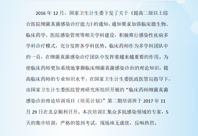 临床药师细菌真菌感染诊治理论培训项目(培英计划)第二期北京培训班开班